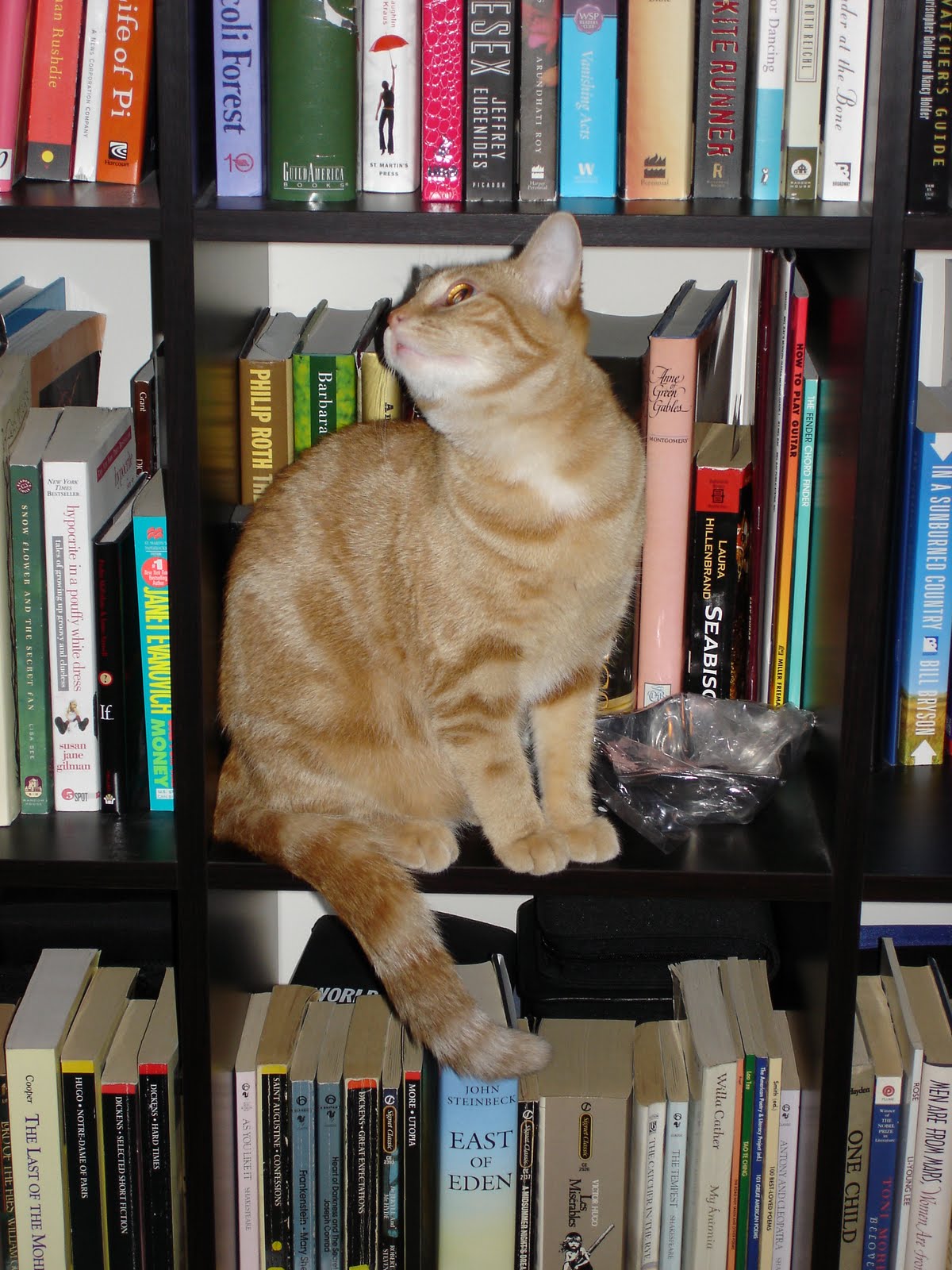 Eat, sleep, play, cuddle, and look cute. That is on my agenda for today. Ooh, I hear water running. Must find faucet. Ooh, a bug is on the window. Must play with bug. Ooh, my owner is trying to work. Must sit on her chest and lick her. Purr, purr, purr. Hmmm, this looks like a comfy spot. Lick, lick, lick. Sleep, sleep, sleep. Ooh, my owner is heading towards the bathroom. Must get there before she does and look cute so she will let me drink water from the bathtub faucet. Slurp, slurp, slurp. Uh oh, here comes Milo. He likes to hiss at me sometimes, but I don't mind. I am cute! Time to chase Milo! We'll cuddle later. Must follow owners everywhere they go. Purr, purr, purr. Knead, knead, knead. I love squishy stomachs! Zzzzz......