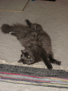 Meow, meow, meow. Hiss, snarl, rawr. Better run away now, my owners look angry. That darn Finola just gets in my way sometimes and I need to protect my mom! Lick, lick, lick, sleep, sleep, sleep. Stretch! Purr. Run, play, jump. Ooh, is that water running? Better go check it out. Drat, Finola is already here! Hiss. Ooh I think I see my BFF in the backyard. His name is "fat squirrel buddy". He was around a lot in the fall but then he abandoned me when all that white stuff was outside. He has lost some weight but so have I. I run up and down the stairs a lot in our new house. It's great to have so much space. Time to go hide under the bed. I like to watch for unsuspecting feet and then BAM! I also like to try and climb the curtains. That usually gets me sprayed with water. Don't tell anyone, but I like being sprayed. It's a free drink! Oh look, here is a comfy spot to sleep. I can sleep anywhere, even on the hard floor. My favorite spot is on my mom though.